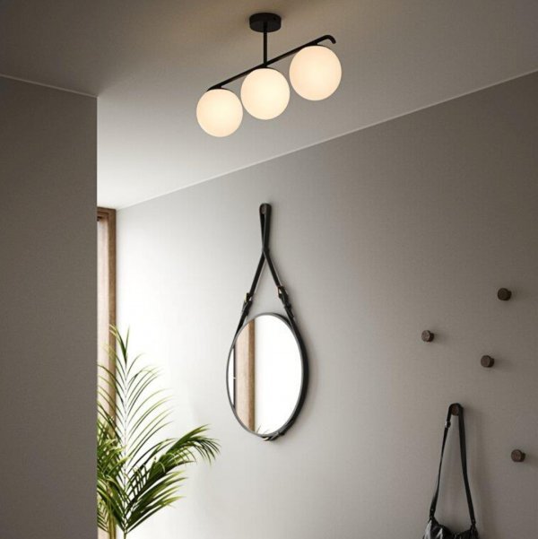 Diese Lampe ist ideal für den Eingangsbereich, das Wohnzimmer oder den Flur, passt aber auch perfekt in ein Schlaf- oder ein Arbeitszimmer. Die Deckenleuchte Grant ist eine gute Alternative, wenn Sie wenig Platz haben, da sie den Bewegungsraum nicht beeinträchtigt. Die drei Kugeln aus weißem Opalglas sorgen für eine schöne, schattenfreie Allgemeinbeleuchtung. Perfekt für die Hauptbeleuchtung eines Raumes. Glühbirnen nicht enthalten.