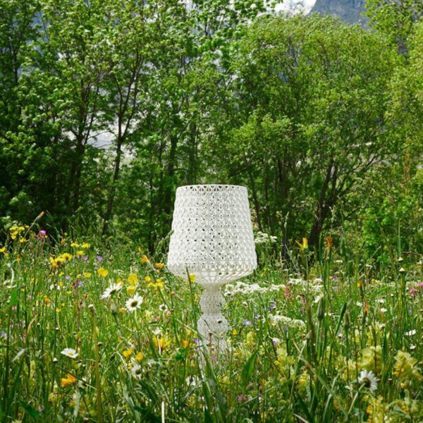 Die Tischleuchte Kabuki wurde von Ferruccio Laviani für die Marke Kartell entworfen. Sie überzeugt durch ihr fast ungreifbares Design, das eine neuartige Rasterstruktur bietet. Mit ihrer leichten und zarten Silhouette erinnert diese Leuchte an die Eleganz der weiblichen Körperhaltung.