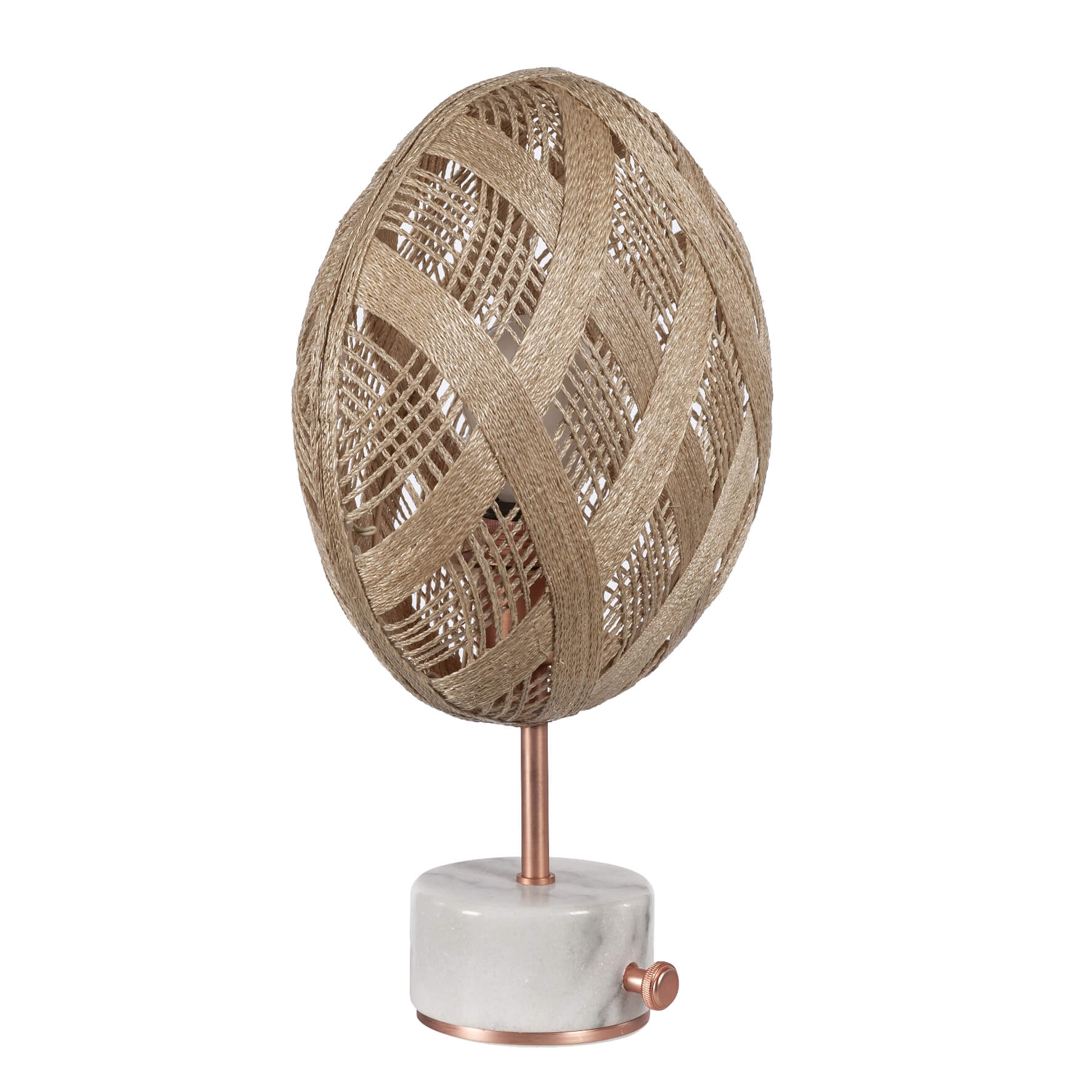 Une lampe de table qui a été conçue par le designer thaïlandais Anon Pairot pour la maison Forestier. Ce luminaire propose une trilogie de matières naturelles et nobles : fibre d’abaca, marbre et métal. Sur le tissage perfectionné de l’abat-jour, on y aperçoit de superbes motifs géométriques. La structure ajourée très aérienne donne naissance à de superbes projections d’ombres sur les murs ou au plafond. Sa base ronde en marbre est équipée d’un variateur de lumière pour créer l’atmosphère que vous désirez. Ampoule non comprise.