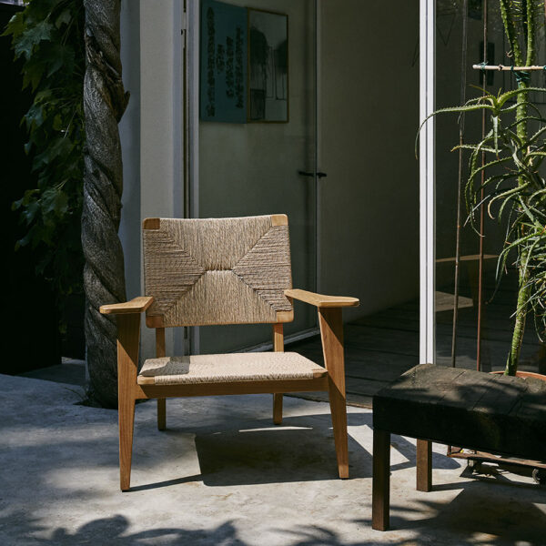 Matériaux Assise et dossier : corde en polyéthylène haute densité tissée – Structure : teck massif certifié SVLK (issu d’un bois 100% légal, où la durabilité de la plantation du bois est assurée)