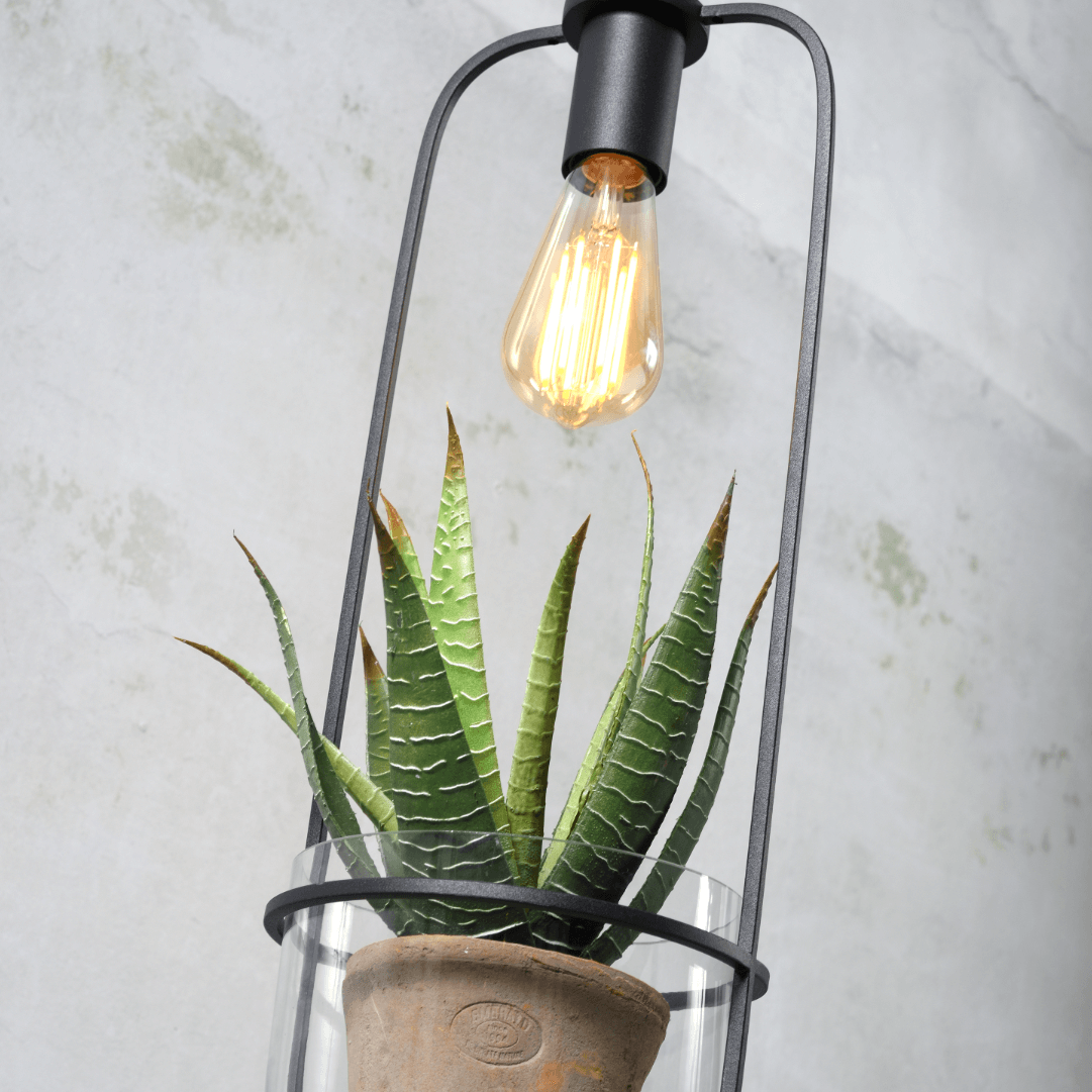 Alliez pratique et déco grâce à la lampe Florence, une suspension originale qui se compose d’un cadre en métal portant un pot en verre et surmontée d’une ampoule décorative. Vous pourrez ainsi laisser libre cours à votre imagination et la décorer au gré de vos envies ou au fil des saisons. On imagine parfaitement des herbes aromatiques dans la cuisine, des cactus tendances pour une véranda ensoleillée ou encore un arrangement de gui à l’approche des fêtes! Cuisine, salle à manger, hall d’entrée, elle trouvera sa place dans tous les intérieurs. N’hésitez pas à les multiplier pour créer un mini jardin intérieur parfaitement mis en lumière! Plante et ampoule non comprise.